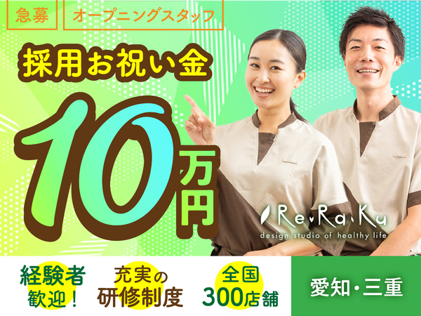全国約300店舗を展開する『Re.Ra.Ku』『Spa Re.Ra.Ku』『Bell Epoc』にて、施術・受付を担当。